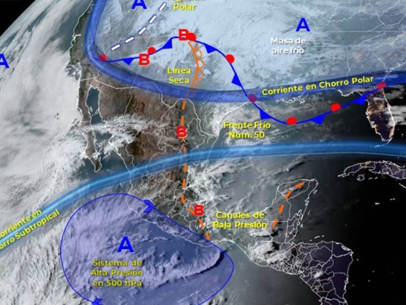 El día de hoy ingresará el frente frío número 51 sobre el norte de México e interaccionará con una línea seca que se establecerá sobre Coahuila y con la entrada de humedad del Golfo de México; ambos originarán lluvias e intervalos de chubascos en el norte y noreste del país, presentándose lluvias fuertes en Coahuila, así como fuertes rachas de viento en dichas regiones y con probabilidad para la formación de torbellinos o tornados en Coahuila y Nuevo León, principalmente en horas de la noche o madrugada del jueves.