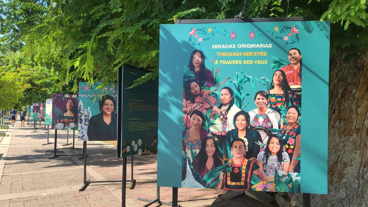 Amaranta Gómez, Fátima Gamboa, Gaby Citlahua, Irma Pineda y Martha Sánchez son algunas de las 12 mujeres cuyos rostros figuran en un tramo del Paseo de Montejo como parte de la exposición “Miradas Originarias” de Citlali Haro, la cual busca visibilizar el trabajo de estas mujeres. La muestra estará hasta fin de año.