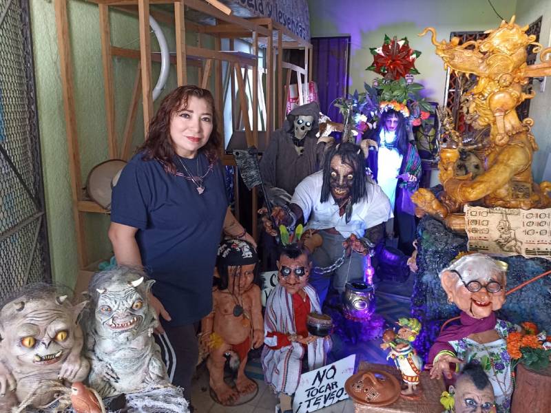 “Primero hago el esqueleto con alambre, lo forro con pape aluminio y al final le pongo la plastilina epóxica. El color de alguna de ellas es pintura de zapatos con thiner”, precisó entre los rostros terroríficos de sus creaciones.
