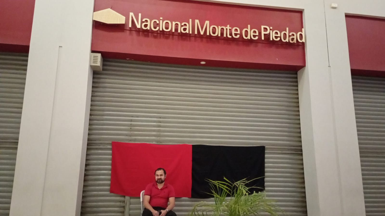 Desde la media noche de este jueves, las banderas rojinegras se instalaron en las sucursales instaladas en la capital yucateca, y los trabajadores de la institución se sumaron a la guardia en cada edificio u oficina.