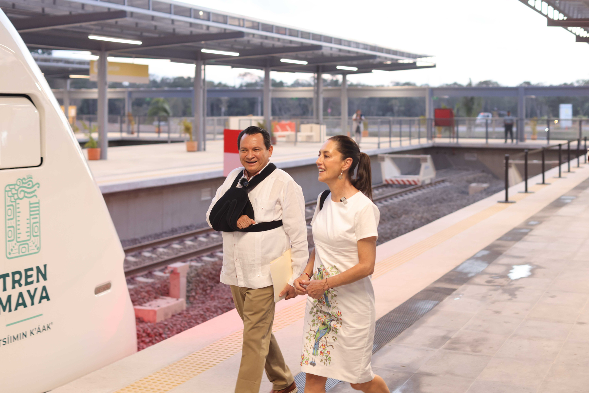 Un reciente video compartido en redes sociales; en las imágenes, se puede ver al candidato a la gubernatura por Morena en el estado de Yucatán, Joaquín Díaz Mena, acompañado por la aspirante a la presidencia de México por el mismo partido, Claudia Sheinbaum abordo del Tren Maya, que va de Cancún a Valladolid.