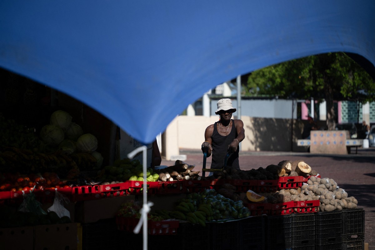 A seller waits for buyers at the Punda floating market on the waterfront of old town Willemstad, Curacao, in the Dutch Caribbean on March 13, 2024. (Photo by Federico PARRA / AFP)