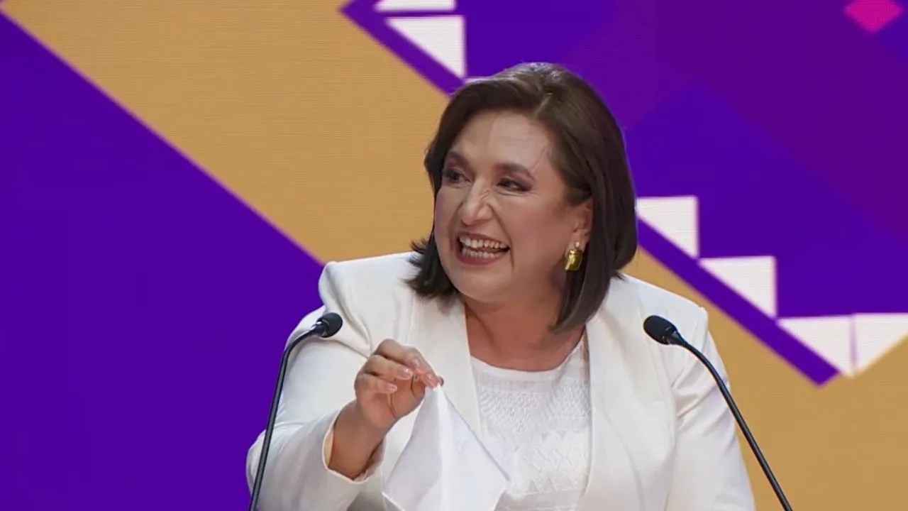“Antes que nada quiero decirles que México está así (mostrando el escudo de cabeza) y yo lo voy a poner así (voltea escudo nacional). Vamos a poner a México de pie, hoy está de cabeza”, fue lo que señaló la abanderada del PAN, PRI y PRD, Xóchitl Gálvez al término del debate presidencial.