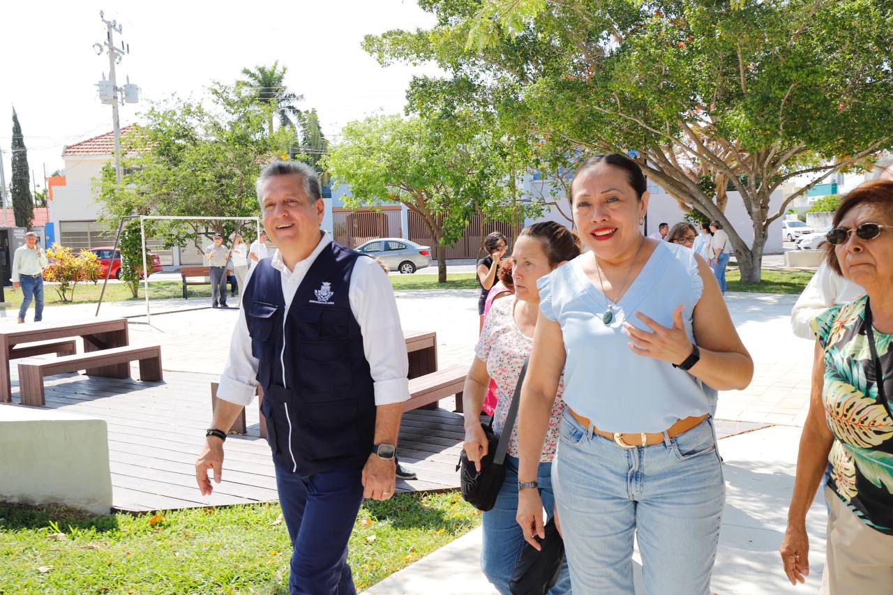 En compañía de vecinos y vecinas que colaboraron de la mano del Ayuntamiento en la toma de decisiones sobre el uso de los espacios públicos de Mérida, el Alcalde Alejandro Ruz Castro supervisó el avance de los trabajos realizados a través del programa “Diseño Participativo en Espacios Públicos” en el Parque de Los Pinos.