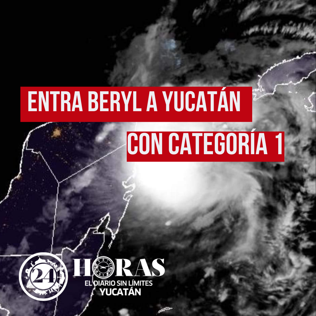 El huracán Beryl, ahora categoría 1, entró a Yucatán con vientos sostenidos de 140 km/h y ráfagas que alcanzan los 185 km/h, afectando principalmente al municipio de Valladolid donde los reportes de sus pobladores indican que están sin energía eléctrica.