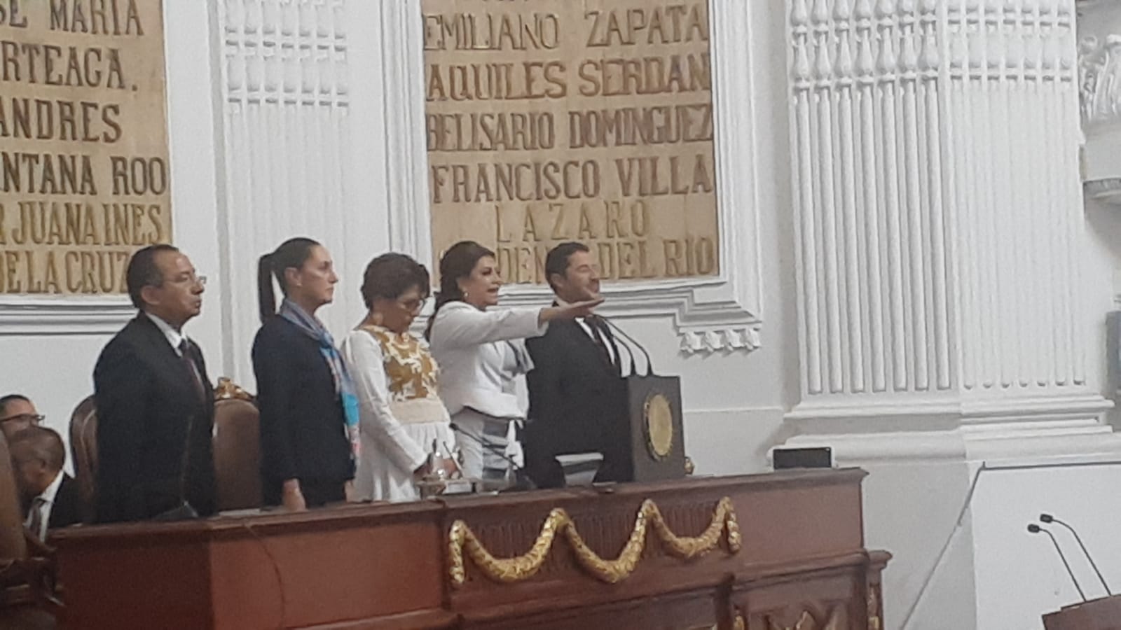 "Asumo mi titularidad del Poder Ejecutivo con el deber de respetar la Constitución y las leyes que de ella emanen", expresó Brugada al rendir protesta como jefa de Gobierno.