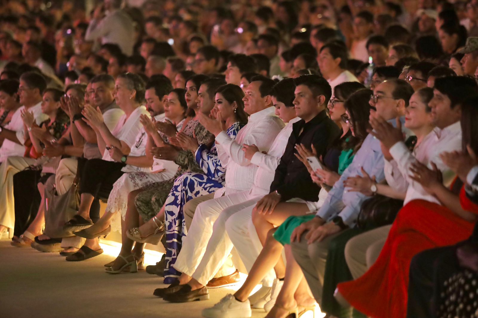 El Gobernador del Estado, Joaquín Díaz Mena disfrutó en compañía de su esposa, la maestra Wendy Méndez Naal, y de sus hijos Joaquín y Julián, el concierto que anunció en días pasados, y que contó con una asistencia superior a las 4,500 personas, quienes pudieron apreciar las piezas musicales y danza, como parte de las acciones del Renacimiento Maya con que se celebran las raíces culturales de nuestra entidad. Cabe recordar que el Renacimiento Maya es el proyecto que impulsa el Gobierno de Díaz Mena donde se incluyen importantes obras como la modernización del Puerto de Altura de Progreso, el ramal del Tren Maya hacia el mismo municipio costero, Parques Industriales con gas natural, el Anillo Metropolitano de la ciudad de Mérida, además de mejorar los perfiles educativos de las universidades, el acceso al deporte y eventos culturales y resaltar el orgullo por la herencia Maya. El Gobernador subrayó que el Renacimiento Maya incluye también acciones y programas para el desarrollo cultural y artístico de las y los yucatecos y recalcó que, con esa idea, muy pronto se pondrán en marcha los Centros Renacimiento, donde las niñas, los niños y los jóvenes podrán recibir clases de música, de pintura y de otras materias relacionadas con esas áreas.