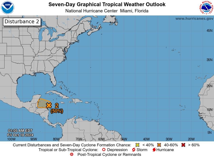 La Coordinación Estatal de Protección Civil de Yucatán emitió un aviso sobre el aumento del potencial ciclónico en un área de baja presión localizada al noreste de Honduras, a aproximadamente 560 kilómetros al sureste del estado de Yucatán. Según el reporte, este sistema tropical tiene un 50% de probabilidad de convertirse en ciclón en los próximos 2 a 7 días.