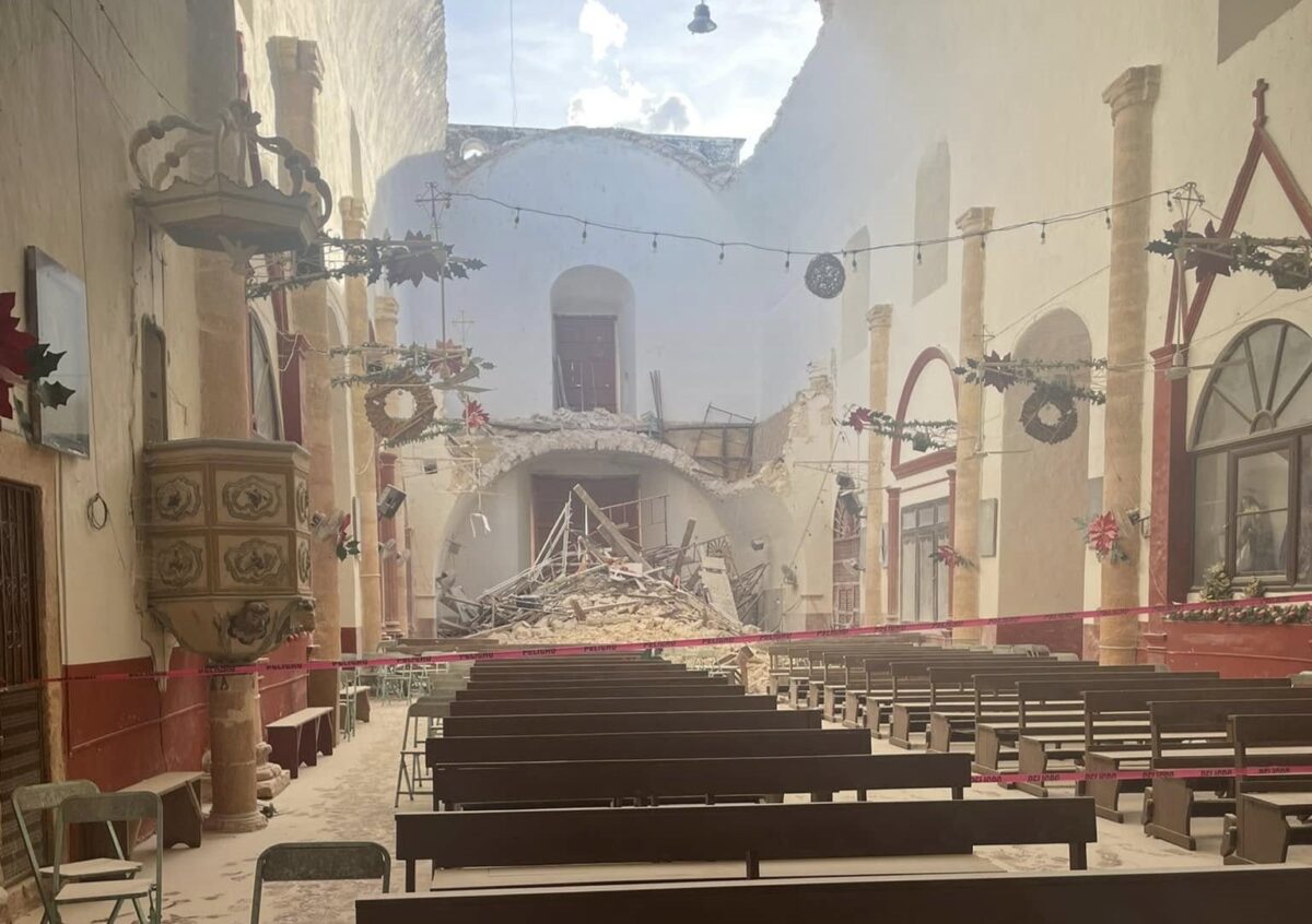 La comunidad parroquial informó a través de sus redes sociales sobre el lamentable colapso del techo de la parroquia San Luis Obispo en Calkiní, Campeche, situación que obliga a realizar ajustes en las celebraciones religiosas programadas.
