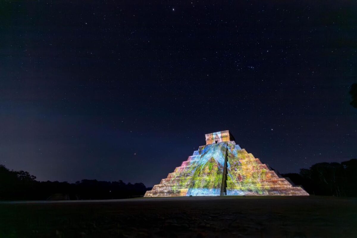 El Castillo de Kukulcán, en Chichén Itzá, fue escenario de la primera proyección del videomapping “El pueblo maya y Felipe Carrillo Puerto: Memoria Luminosa”.
