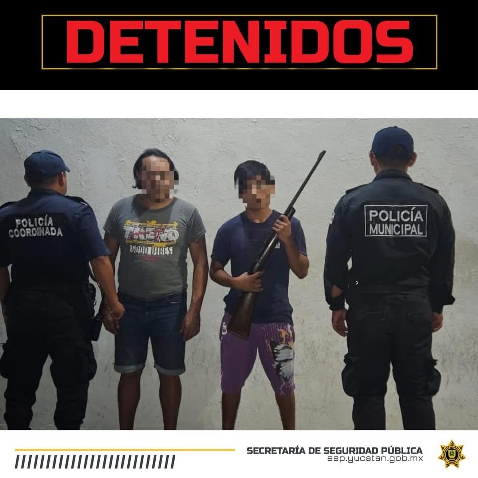 La Secretaría de Seguridad Pública (SSP), en conjunto con la Policía Municipal de Progreso, detuvo a dos hombres que portaban un rifle calibre .22 desabastecido frente a una escuela secundaria.