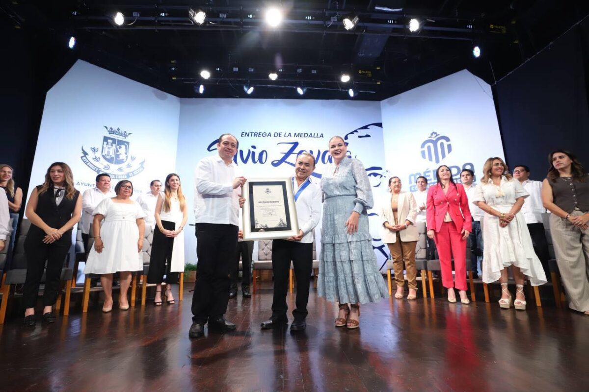En sesión solemne de cabildo celebrada esta noche en el auditorio "Silvio Zavala Vallado" del Centro Cultural Olimpo, la alcaldesa Cecilia Patrón Laviada entregó la Medalla "Silvio Zavala" al compositor Felipe de la Cruz Várguez Carrillo, quien, además de agradecer la distinción, hizo un llamado a las autoridades a reforzar la identidad cultural de Yucatán.