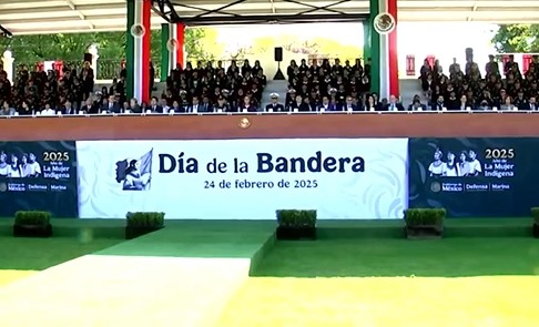La ceremonia se realizó de manera simultánea con el abanderamiento que hizo la presienta Claudia Shenbaum Pardo, desde la capital del país.
