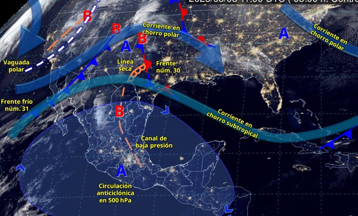 El Servicio Meteorológico Nacional (SMN) pronostica un inicio de semana con altas temperaturas en Yucatán, con valores que oscilarán entre 35º y 38ºC. Además, un canal de baja presión y la entrada de humedad generarán lluvias dispersas en Quintana Roo, mientras que en Yucatán y Campeche las probabilidades de lluvia serán mínimas.
