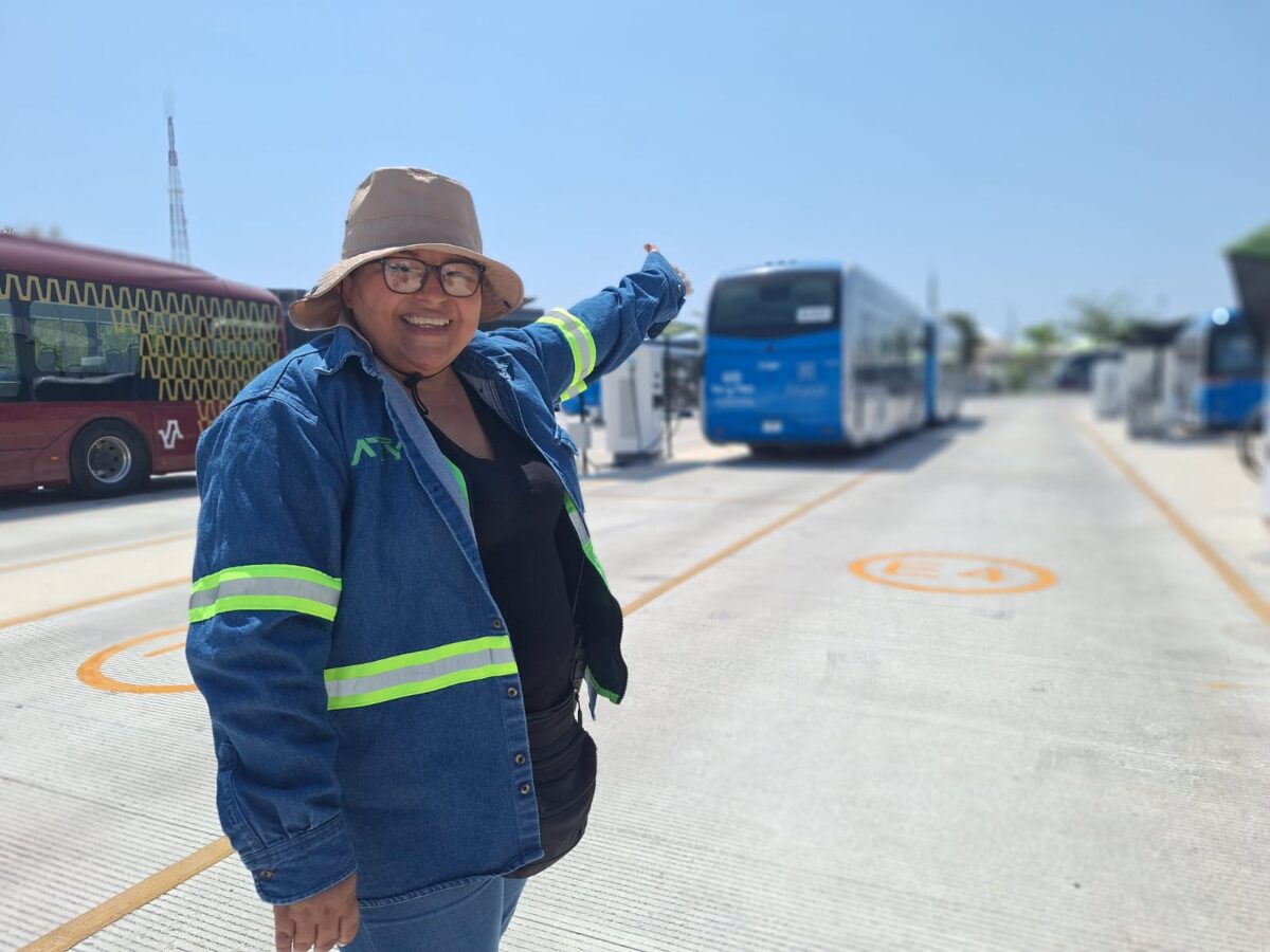 Bajo el sol intenso o la lluvia, Lupita verifica que las mangueras de carga funcionen correctamente y programa la distribución de energía para los camiones del sistema “Va y Ven” y el Ie-Tram. Además, gestiona los espacios de estacionamiento en la estación.