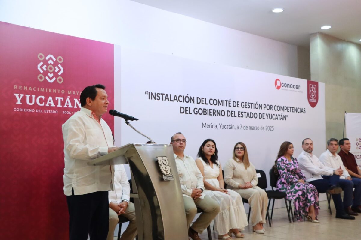 Mérida, Yucatán, a 7 de marzo de 2025.- Yucatán refuerza su liderazgo en la profesionalización de trabajadores con la instalación del Comité de Gestión por Competencias, encabezado por el gobernador Joaquín Díaz Mena. Este comité permitirá evaluar y certificar habilidades para fortalecer la productividad y el empleo en el estado.