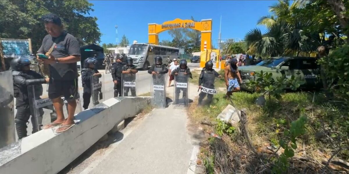 Un fuerte enfrentamiento se dio la mañana de este martes en el puerto de Sisal entre pobladores y la policía estatal, luego de que los primeros cerrarán el acceso a este pueblo mágico como presión para que los dejen habitar en las dunas.