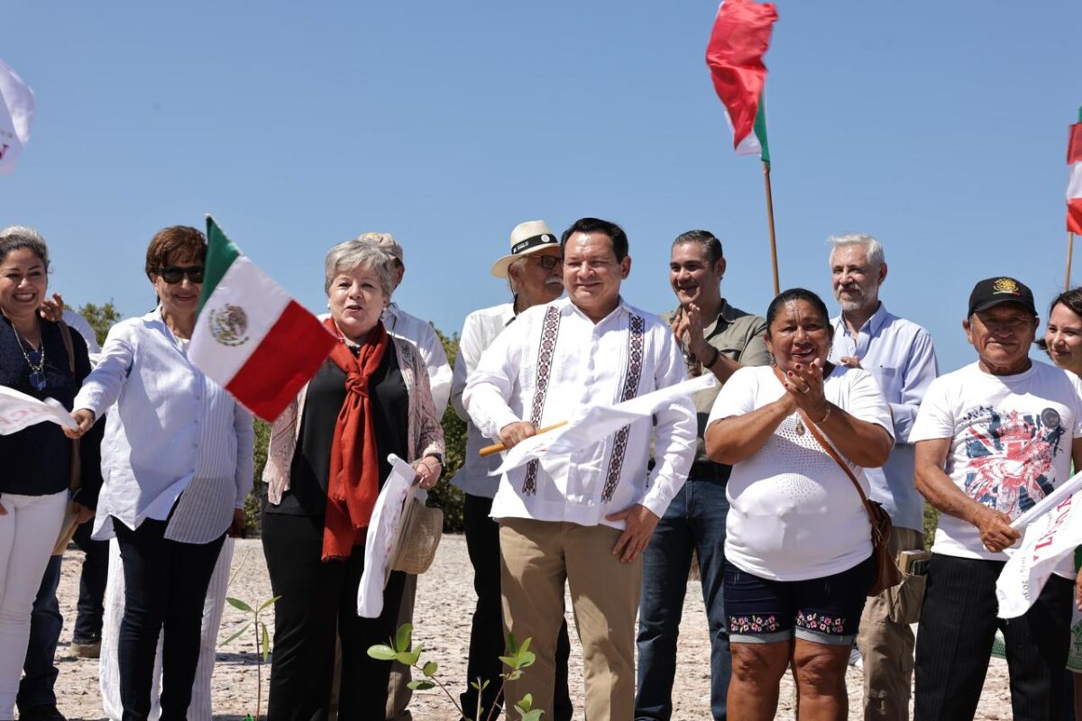 En el puerto de Chuburná, el Ejecutivo estatal y la funcionaria federal realizaron el banderazo de inicio de la siembra de más de 100 mil ejemplares de mangle rojo, negro y verde. Esta acción busca proteger la costa ante fenómenos meteorológicos y preservar la biodiversidad.