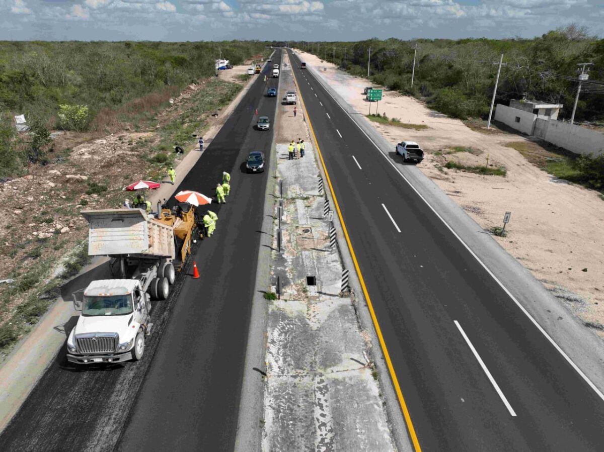 Además, los tramos de las carreteras Mérida-Progreso y Mérida-Puerto Juárez también están siendo rehabilitados, en colaboración con la Secretaría de la Defensa Nacional.