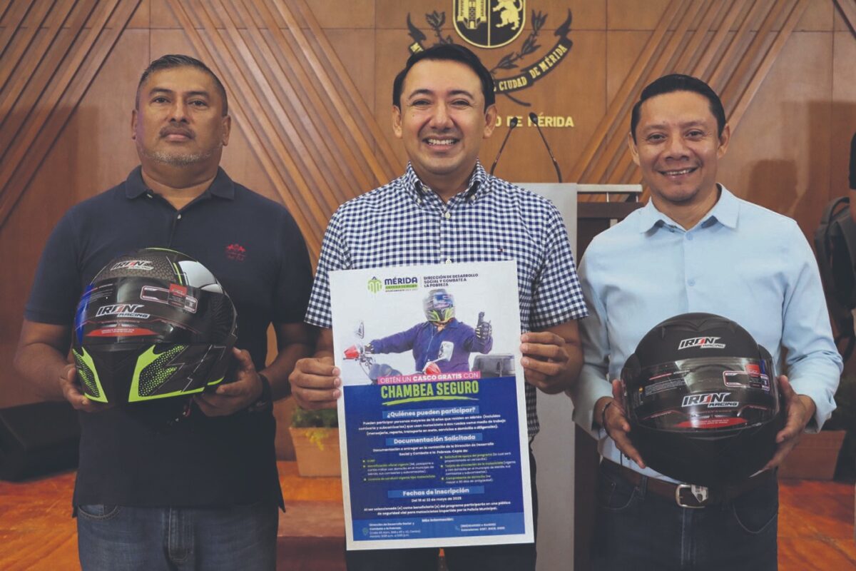 Este mes, se llevará a cabo en Mérida la primera entrega gratuita de cascos certificados con norma DOT, reconocidos por su alta capacidad de protección, a trabajadores que se mueven en moto.