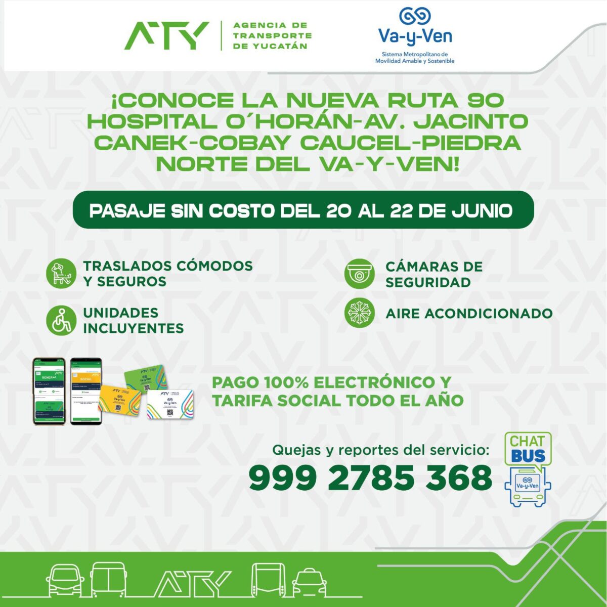 Incorporan Ruta 90 al Sistema Va y Ven: ruta Hospital O’Horán – Av. Jacinto Canek – Cobay Caucel – Piedra Norte.