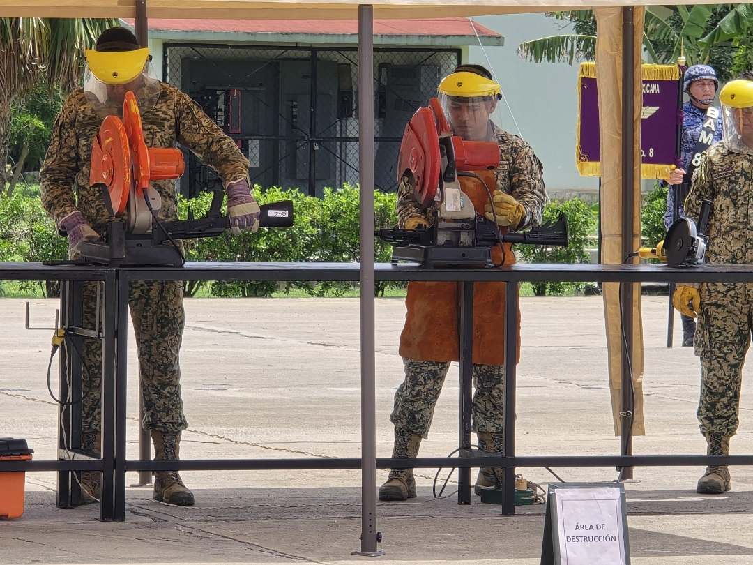De acuerdo con lo indicado por el también General de Brigada de Estado Mayor, informó que se destruyeron 304 armas de fuego: 78 largas y 226 cortas, así como 247 cargadores y 8 mil 659 cartuchos. Este material fue incautado o entregado de forma voluntaria.