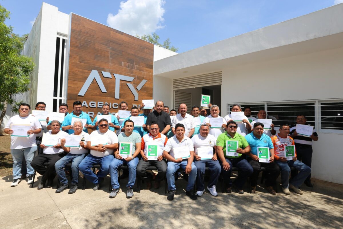 El titular de la ATY, Jacinto Sosa Novelo, encabezó la ceremonia de entrega de tarjetones y constancias a los operadores que concluyeron su preparación en el Instituto de Capacitación y Certificación.