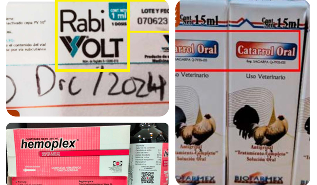 La Secretaría de Agricultura y Desarrollo Rural, a través de Senasica, alertó sobre la circulación irregular de tres medicamentos para uso animal: Catarrol Oral, Hemoplex y Rabi Volt, usados para tratar enfermedades respiratorias, anemia y rabia, respectivamente.