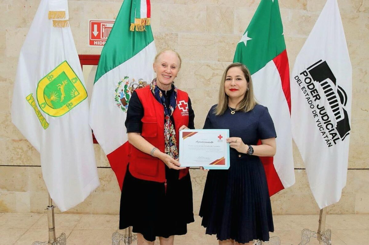 La presidenta del Tribunal Superior de Justicia del Estado y del Consejo de la Judicatura, María Carolina Canto Valdés, entregó a la Cruz Roja Mexicana un donativo económico reunido gracias a las aportaciones voluntarias de trabajadores, directores, magistrados y consejeros del Poder Judicial de Yucatán.