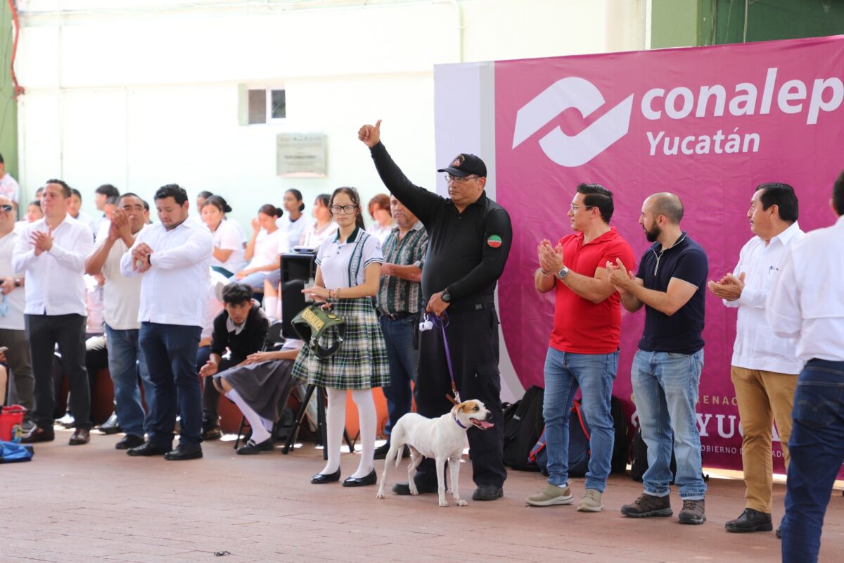 Participaron también el director del plantel, Josafat Abdías Hernández Hernández, y el comandante Fernando Gorocica Koo, así como entrenadores de Mérida, Hunucmá y Tixcocob, quienes compartieron con los jóvenes la importancia de los perros de compañía y de terapia en el bienestar emocional de las personas.