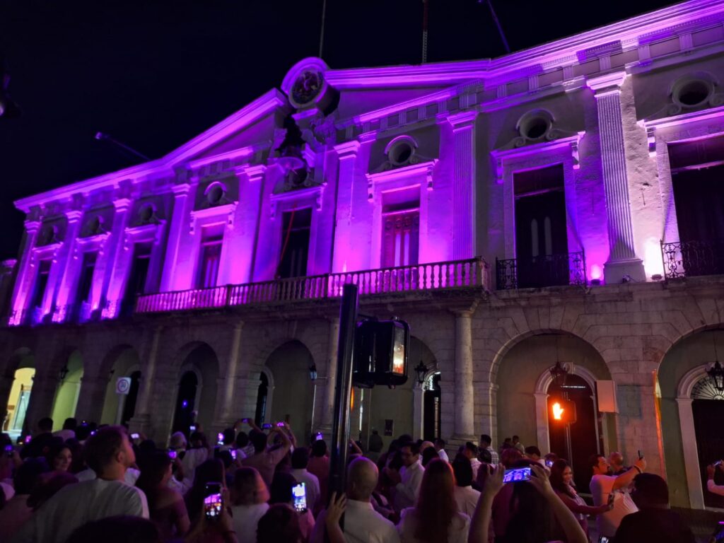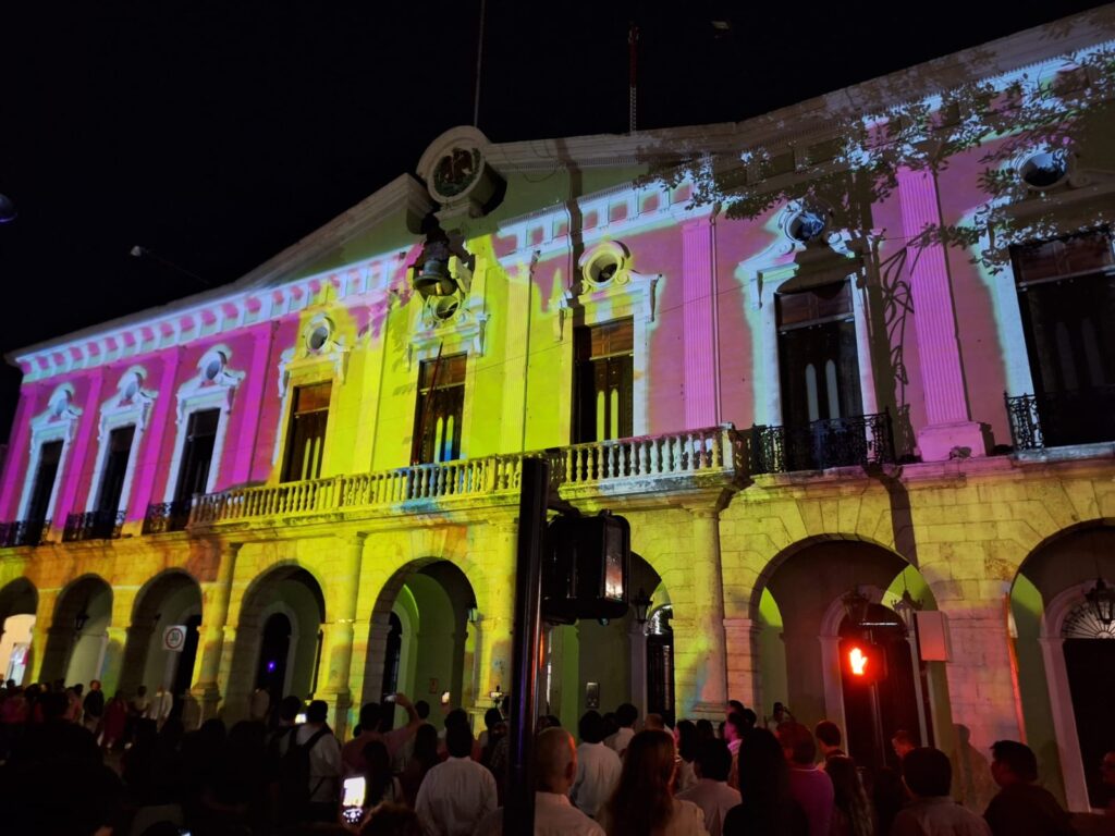Por su parte, la presidenta del DIF Yucatán, Wendy Méndez Naal, resaltó que el videomapping busca iluminar no solo la fachada del Palacio de Gobierno, sino también la esperanza.