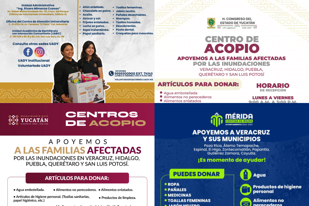 Las diversas instituciones han habilitado centros de acopio Yucatán en puntos estratégicos de Mérida, facilitando la participación ciudadana.