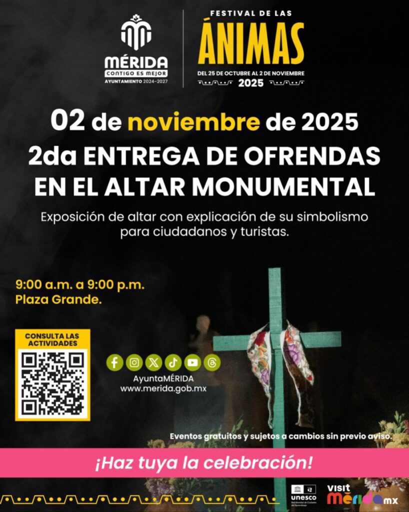 El Altar Monumental no solo honra la memoria de los difuntos, también celebra la vida, la herencia y la fe de un pueblo que no olvida. Porque en Yucatán, cada flor, vela y bocado de pib es un acto de amor hacia quienes, aunque ya no están, siguen presentes en cada rincón del alma.