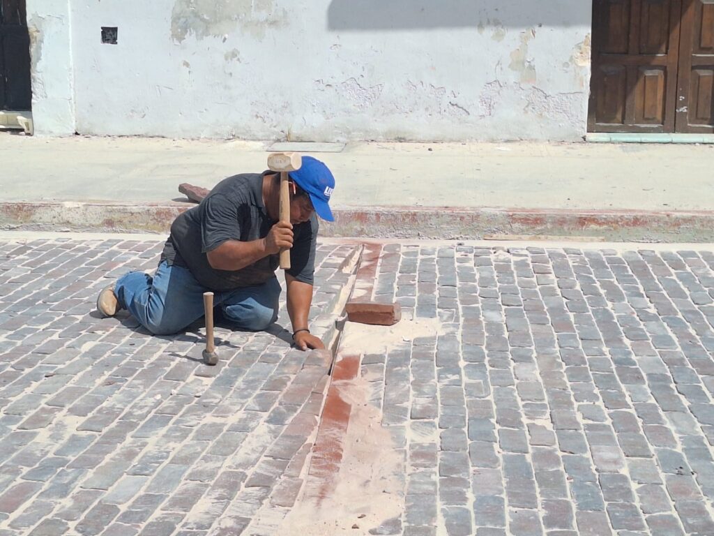 Los trabajos en este icónico barrio de Mérida iniciaron desde el pasado 29 de julio con el levantamiento de adoquines rojos, nivelación del piso, así como el mantenimiento y reinstalación de los ladrillos, a fin de devolver el trazado original.