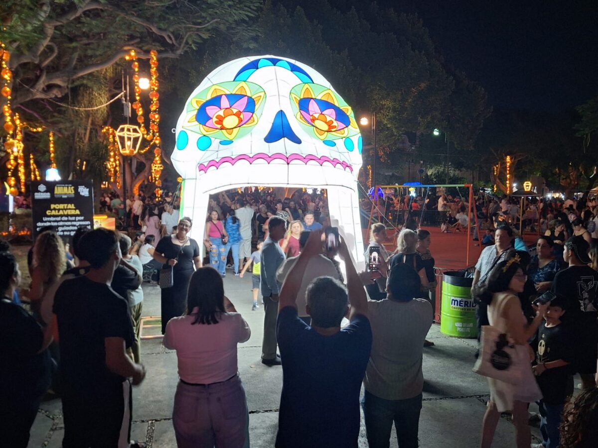 Cientos de familias meridanas acudieron al evento inaugural, donde las catrinas monumentales se iluminaron para dar la bienvenida simbólica a las almas que regresan en estas fechas. Entre árboles decorados con luces cálidas, figuras gigantes y un ambiente festivo, el parque se convirtió en un punto de encuentro donde la memoria y la alegría se entrelazaron.