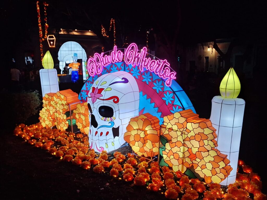 En esta edición, el parque de San Juan luce 19 figuras monumentales iluminadas, entre calaveras, catrinas, flores de cempasúchil y altares tradicionales que invitan a recorrerlo al caer la noche.