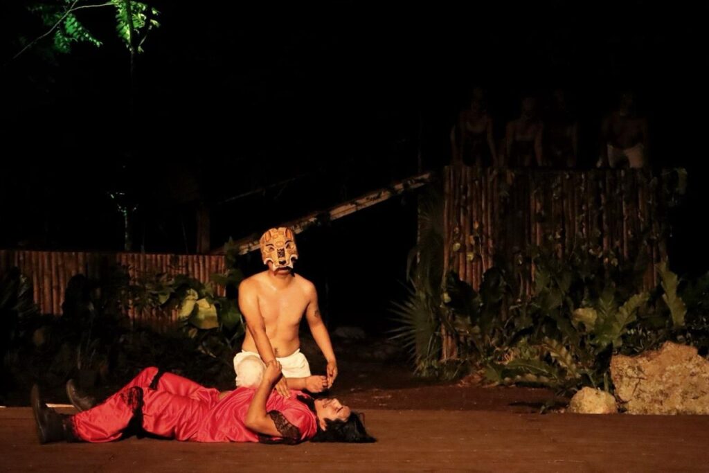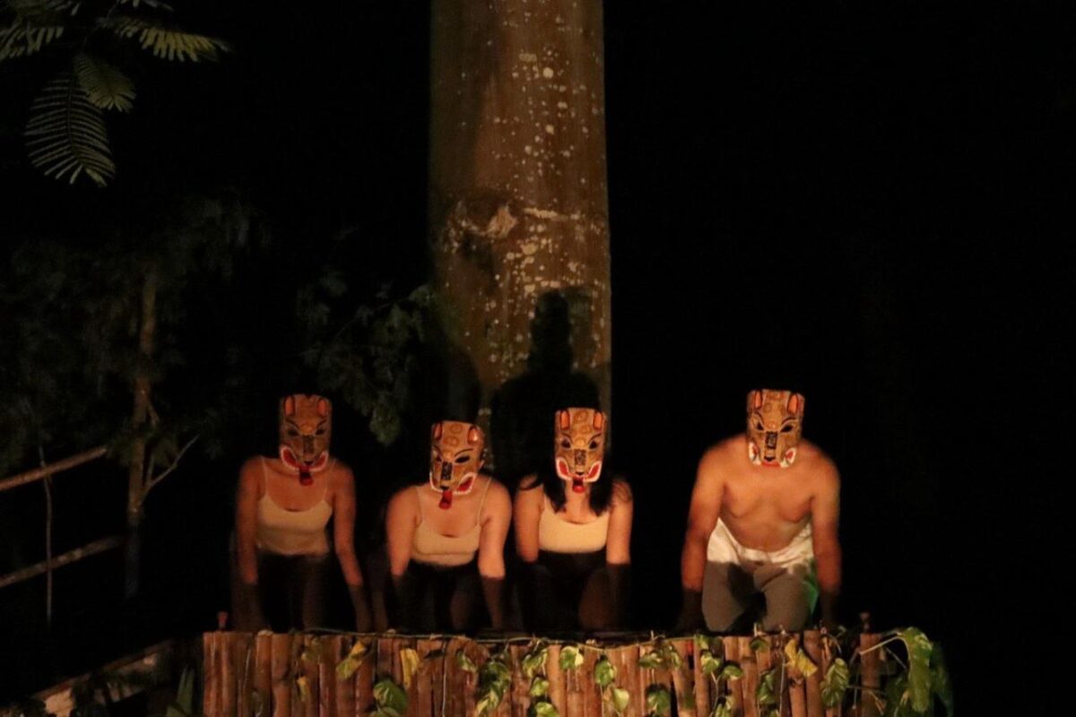 Las condiciones naturales del escenario, rodeado de árboles y monte, realzaron la esencia de una narración que combinó el arte con la voz viva de la lengua maya, relatando la historia de Juan, el jaguar que vivió como hombre, enfrentando la intolerancia y la lucha interior.
