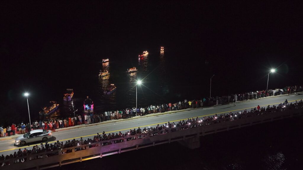 Desde el puente de acceso al puerto, cientos de familias admiraron el desfile de lanchas iluminadas, una celebración que unió tradición, arte y naturaleza, consolidando a Celestún como un nuevo referente cultural en Yucatán.