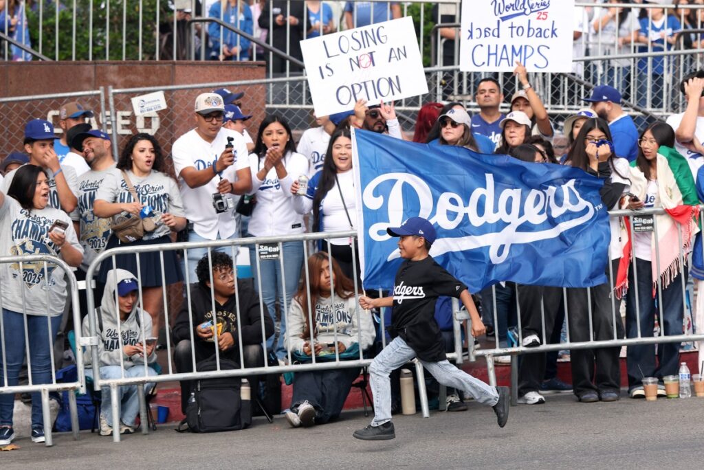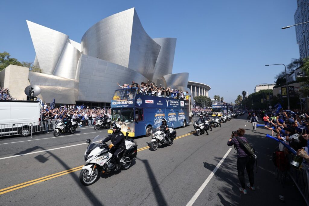 Cientos de miles de aficionados tiñeron Los Ángeles de azul este lunes para celebrar la segunda Serie Mundial consecutiva conquistada por los Dodgers. Una lluvia de confeti envolvió la caravana de autobuses descapotables que transportaba a los jugadores, dos días después de su épica victoria sobre los Azulejos de Toronto.
