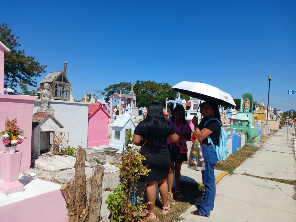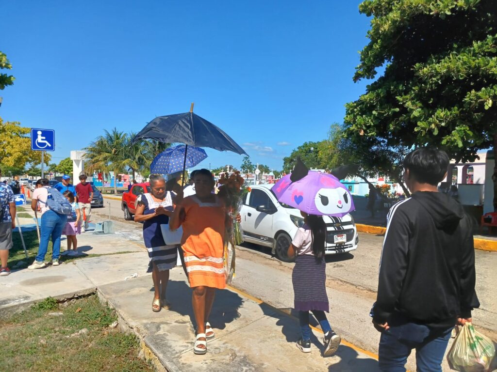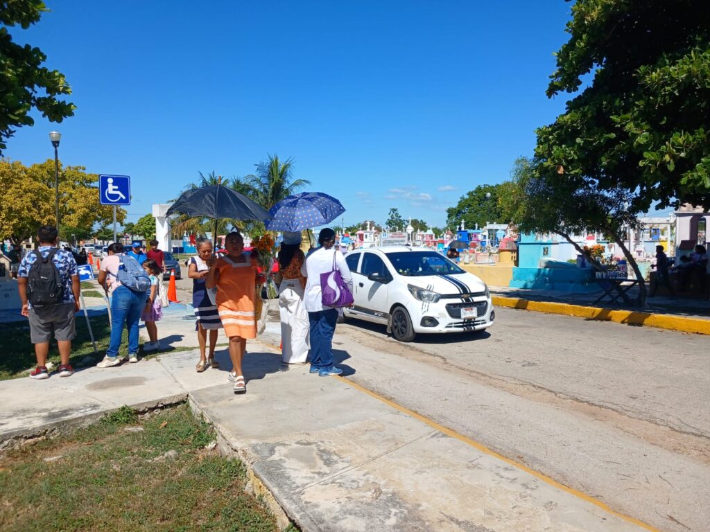 De acuerdo con personal del cementerio de Xoclán, pasadas las 10 de la mañana ya habían ingresado cerca de mil vehículos. Entre los visitantes se encontraba doña Martha Chan, quien llegó acompañada de su hijo poco antes de las nueve, cargada con pintura, brochas y utensilios, para devolverle el color a la bóveda de su esposo y dejarla lista antes de la misa.