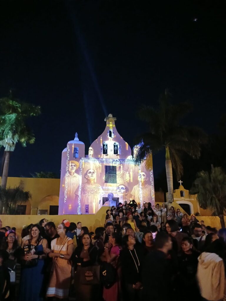 En la Ermita de Santa Isabel, los video mappings proyectados sobre la cosmovisión maya, el Janal Pixán y el agua ofrecieron una experiencia inmersiva que resaltó la importancia cultural de esta conmemoración.