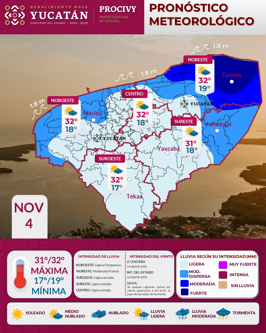 La proximidad de la Onda Tropical No. 40, favorecerá la presencia de lluvia moderada y fuerte en los municipios del noreste y sureste del estado, mientras que en municipios del centro, suroeste y noreste se registrará de intensidad ligera y moderada dispersa.