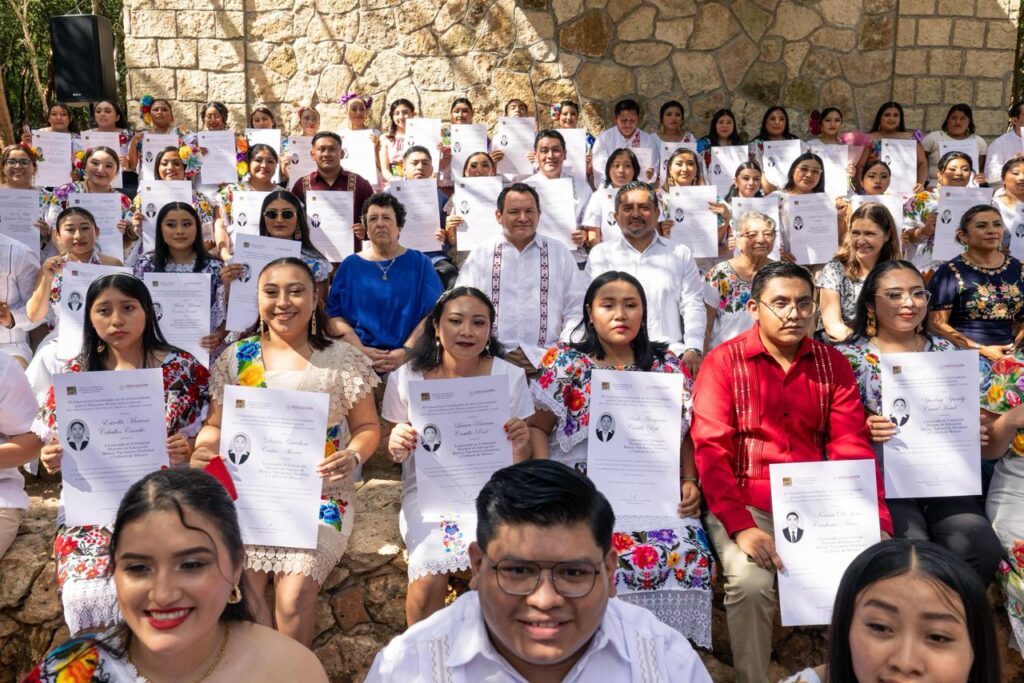 “La vocación y el amor por la enseñanza serán la fuerza que los impulse a servir a las niñas y los niños de Yucatán y al pueblo de México, que los espera con los brazos abiertos”, expresó durante su intervención.