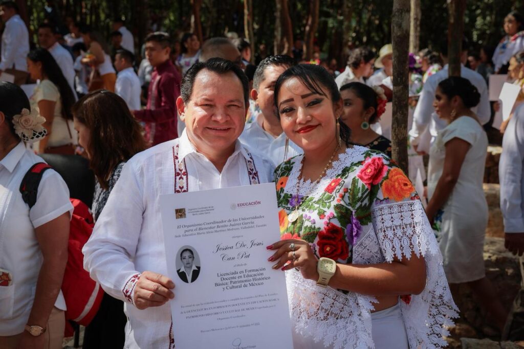 El Gobernador Joaquín Díaz Mena encabezó la entrega de 220 certificados de licenciatura a egresadas y egresados de las Universidades para el Bienestar Benito Juárez García (Ubbjg). Las y los jóvenes concluyeron sus estudios en Educación Docente en Educación Básica y Patrimonio Histórico y Cultural de México, lo que refuerza la preparación profesional en comunidades rurales. Además, este acto marca un avance importante para quienes buscan nuevas oportunidades laborales y académicas.