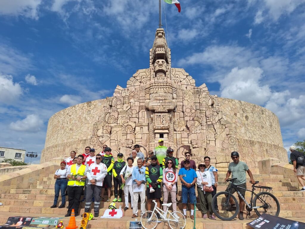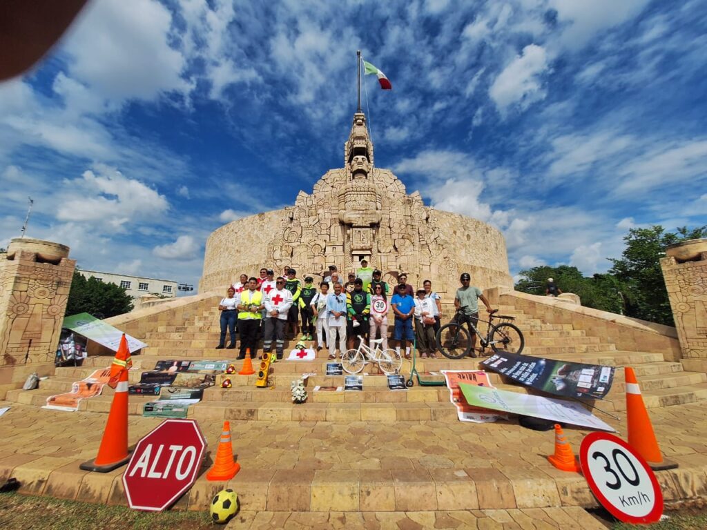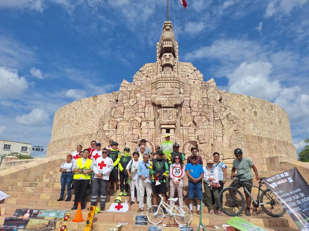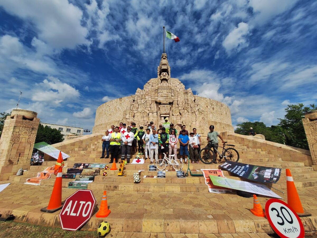 Un nutrido grupo de Comunidades, Especialistas, Profesionistas, Organizaciones Civiles, y Familiares de quienes han perdido la vida o han sufrido lesiones se reúne en el icónico monumento del Paseo de Montejo para rendir tributo a las víctimas de los siniestros viales en Yucatán.