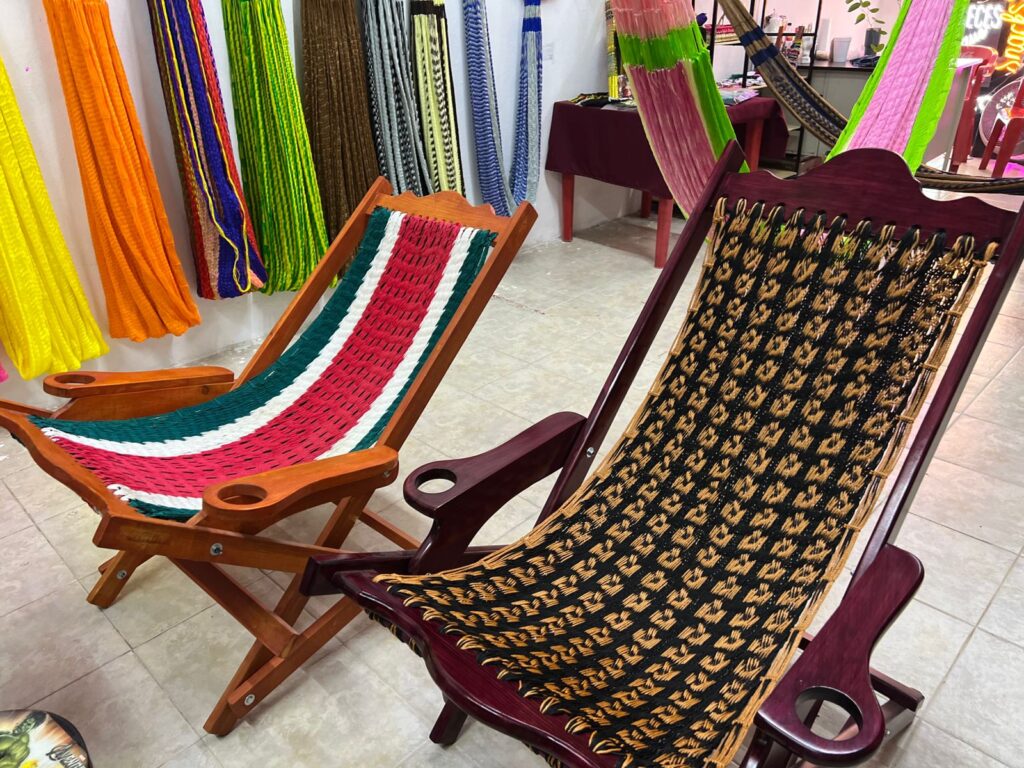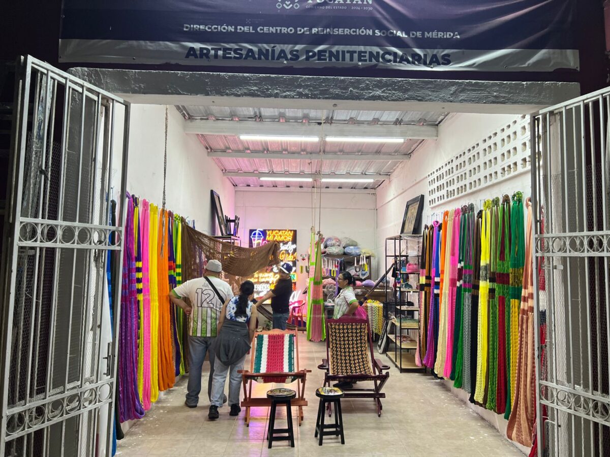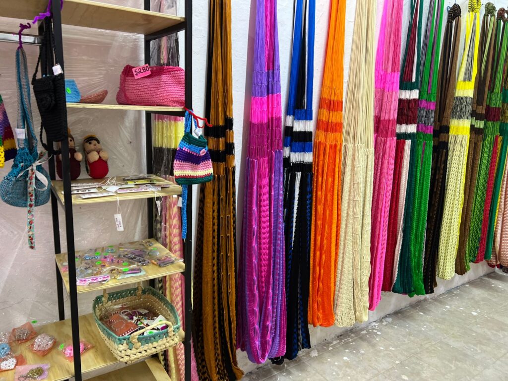 Según explicó Josué Medina, encargado del módulo, los internos elaboran una amplia variedad de productos a mano, destacando las hamacas artesanales, famosas por su calidad. Ofrecen modelos tradicionales y especiales con figuras de sandía y pitaya, con precios entre $1,550 y $4,500, siendo la hamaca de crochet la más fina.