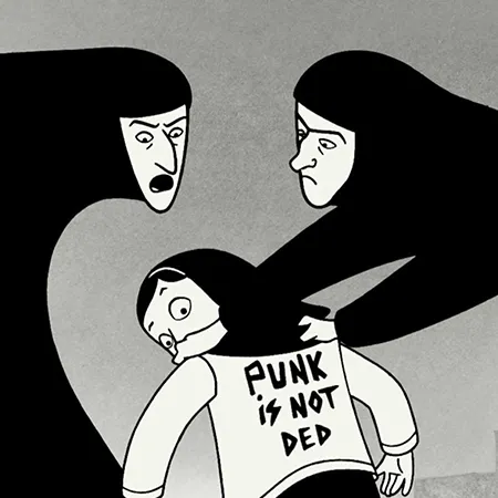 Más adelante, la guerra Irán–Irak llega a la ciudad con bombardeos, alarmas y pérdidas. La vida cotidiana se llena de contradicciones: fiestas clandestinas, rock censurado, ropa “prohibida” y, al mismo tiempo, un control cada vez más fuerte sobre el cuerpo y la conducta de las mujeres. Ante este clima, su familia decide enviarla sola a estudiar a Europa. Persépolis nos cambia entonces de escenario y muestra un exilio lleno de racismo, precariedad y soledad.