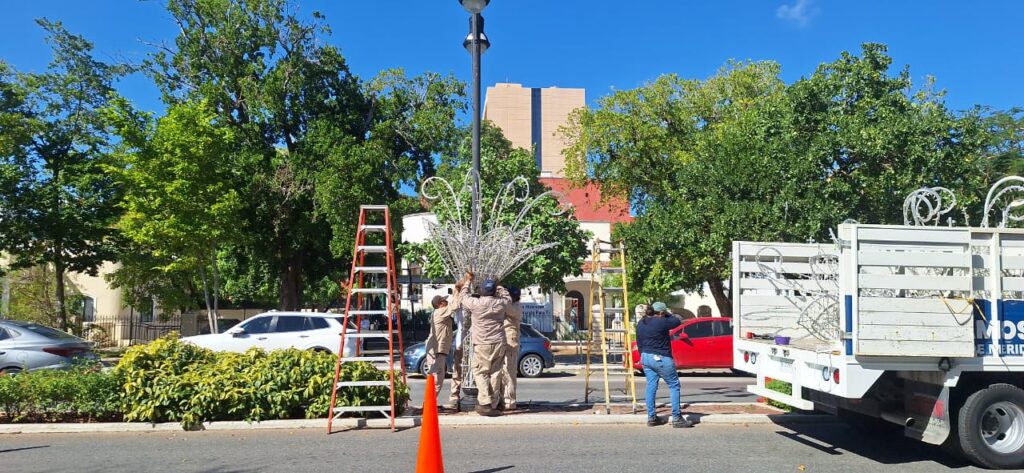 Mientras los ciudadanos buscan el adorno perfecto para sus hogares, en una de las vías más icónicas de Mérida, el Paseo de Montejo, el Ayuntamiento ya ha puesto manos a la obra. La famosa avenida está siendo engalanada por personal municipal que trabaja contrarreloj.
