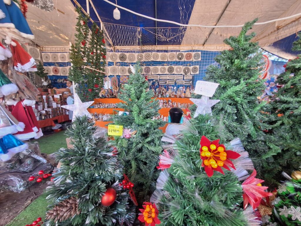 Apenas es noviembre, pero la gente ya está preguntando por los nacimientos, comenta Doña Elena, comerciante de la zona. Vendemos de todo: arbolitos artificiales, las casitas para el pesebre, las figuras bíblicas, y claro, ¡los foquitos y esferas! Hay que aprovechar el tiempo, porque la gente quiere empezar a adornar desde ya.
