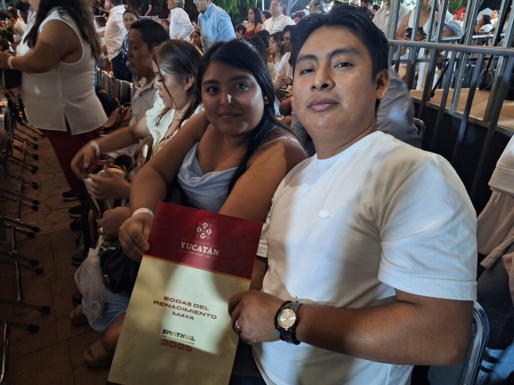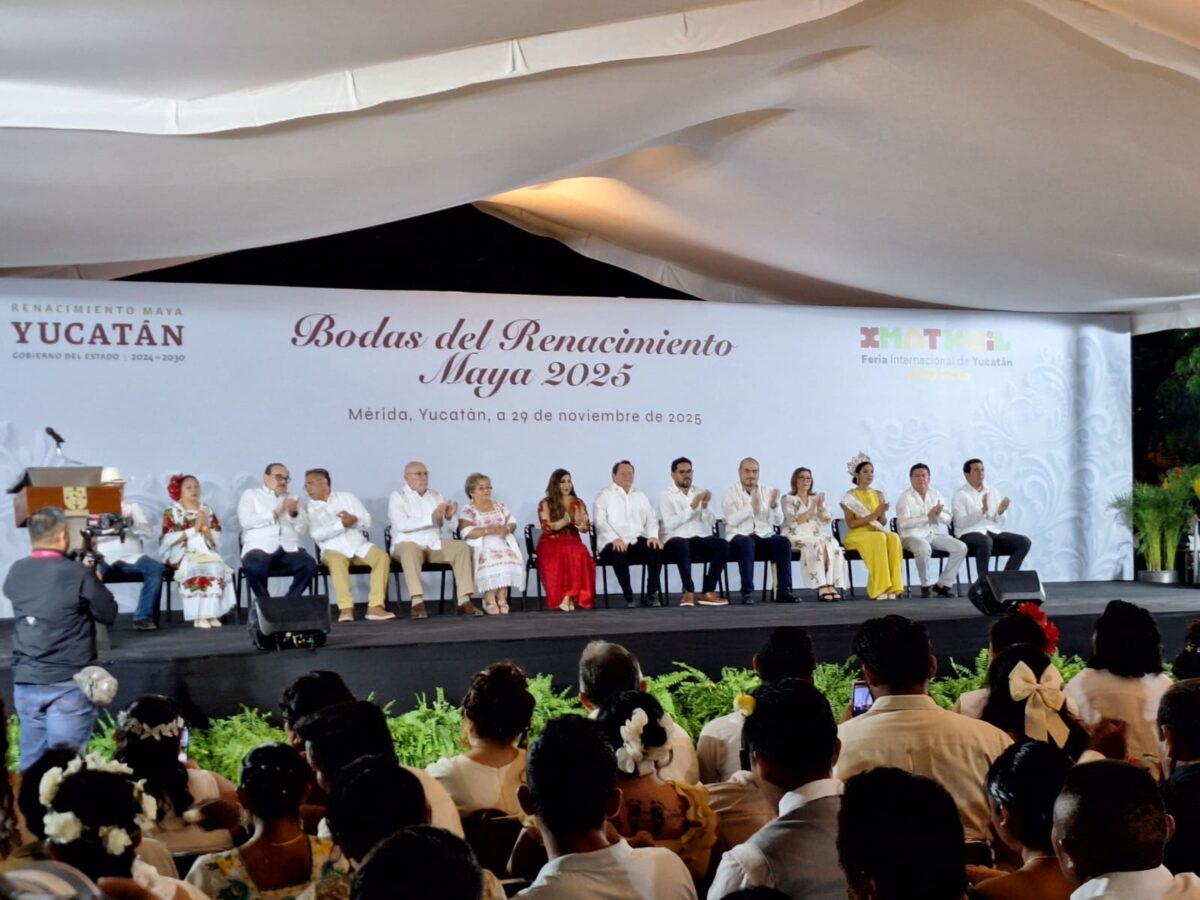 En un ambiente de fiesta y emoción, más de 500 parejas formalizaron su unión matrimonial durante las bodas colectivas realizadas esta tarde en las inmediaciones de la Feria de Xmatkuil. El evento, organizado por el Registro Civil de Yucatán, tuvo como padrino al gobernador del estado, Joaquín Díaz Mena, y como madrina a su esposa, Wendy Méndez Naal, quienes acompañaron a los contrayentes en este momento especial.